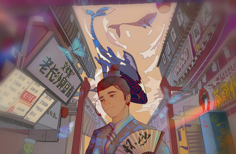 作者:张芷妤作品简介:长沙自古民间也流传着许多神话与鬼怪的传说。其中较为人熟知的有“化龙池”“白沙井”“蟒蛇洞”等民间妖怪传说,在《搜神记》《湘中记》《拾遗记》等志怪小说中,长沙民间也流传着诸如“蛟”、“虹怪”等妖神的记载。基于这个理由与文化背景,笔者选择将长沙的历史典故和对时间沉淀的理解通过自己的方式表达出来,达到表达的目的。