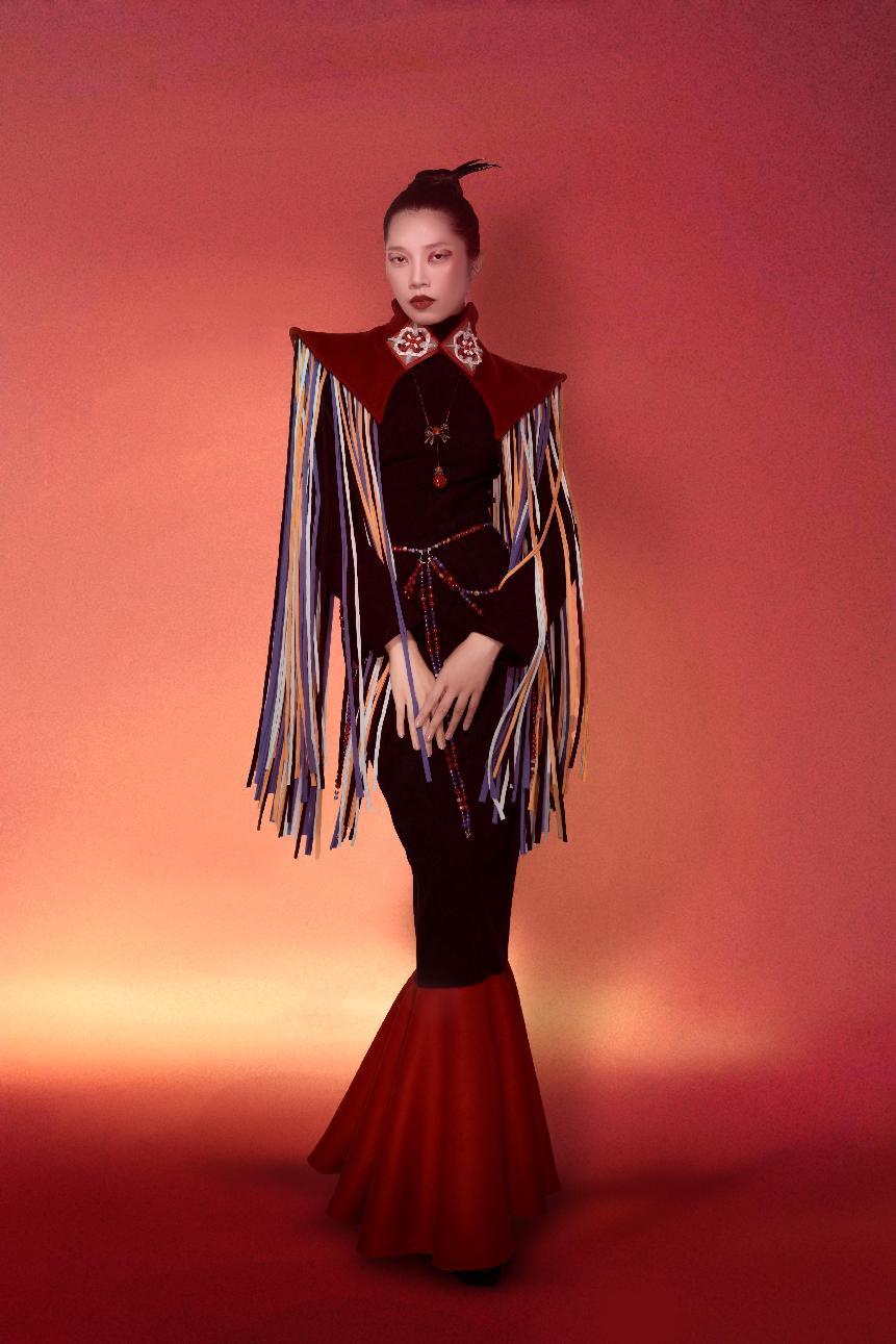 蔡文钊作品简介:以过去为母系氏族社会的海南黎族为设计灵感,来体现女性力量,现在社会环境下对女性的偏见依然存在,而常常忘记女性对这个社会的贡献和身为一个女性的伟大,本次设计主要以黎族文化体现女性力量和独立自主的女性精神,同时发扬中华民族传统文化,也让大家更加了解海南黎族。