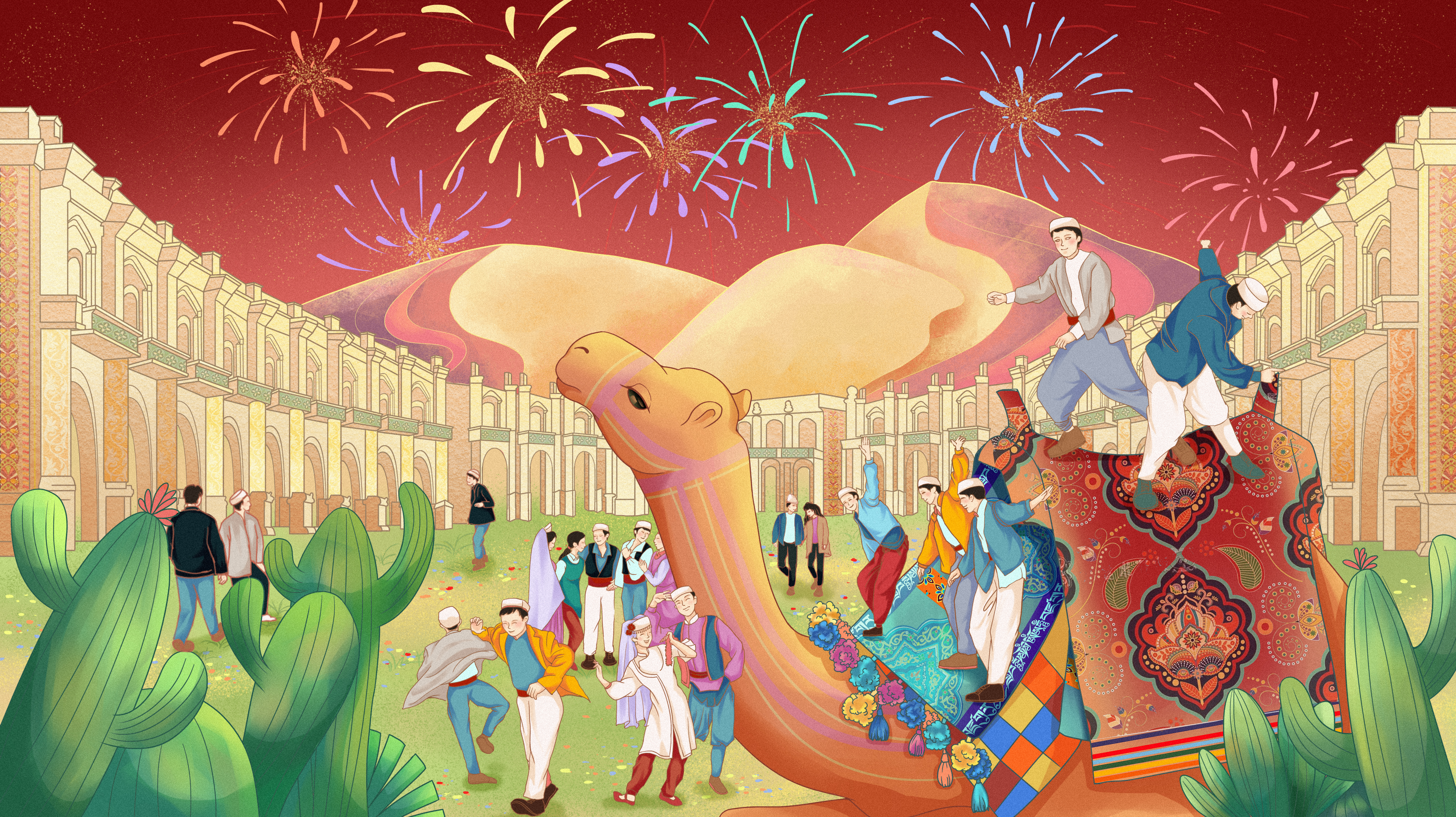 赵梦宣 来思华作品简介:八宝茶作为非物质文化遗产是中国宁夏很重要的文化标志,是国家和民族文化历史成就的展现。非物质文化遗产的继承并不只是对人类的文化有着十分重要的意义,也是对于展现世界文化的多样性具有独特的作用,是全人类的共同财富。本次毕业设计为推广宁夏特产八宝茶,自创“正儿八经·八宝茶”品牌。结合品牌文化、品牌故事以及宁夏风土人情与地域特点,绘制一系列插画,以达到对宁夏特产八宝茶的宣传。