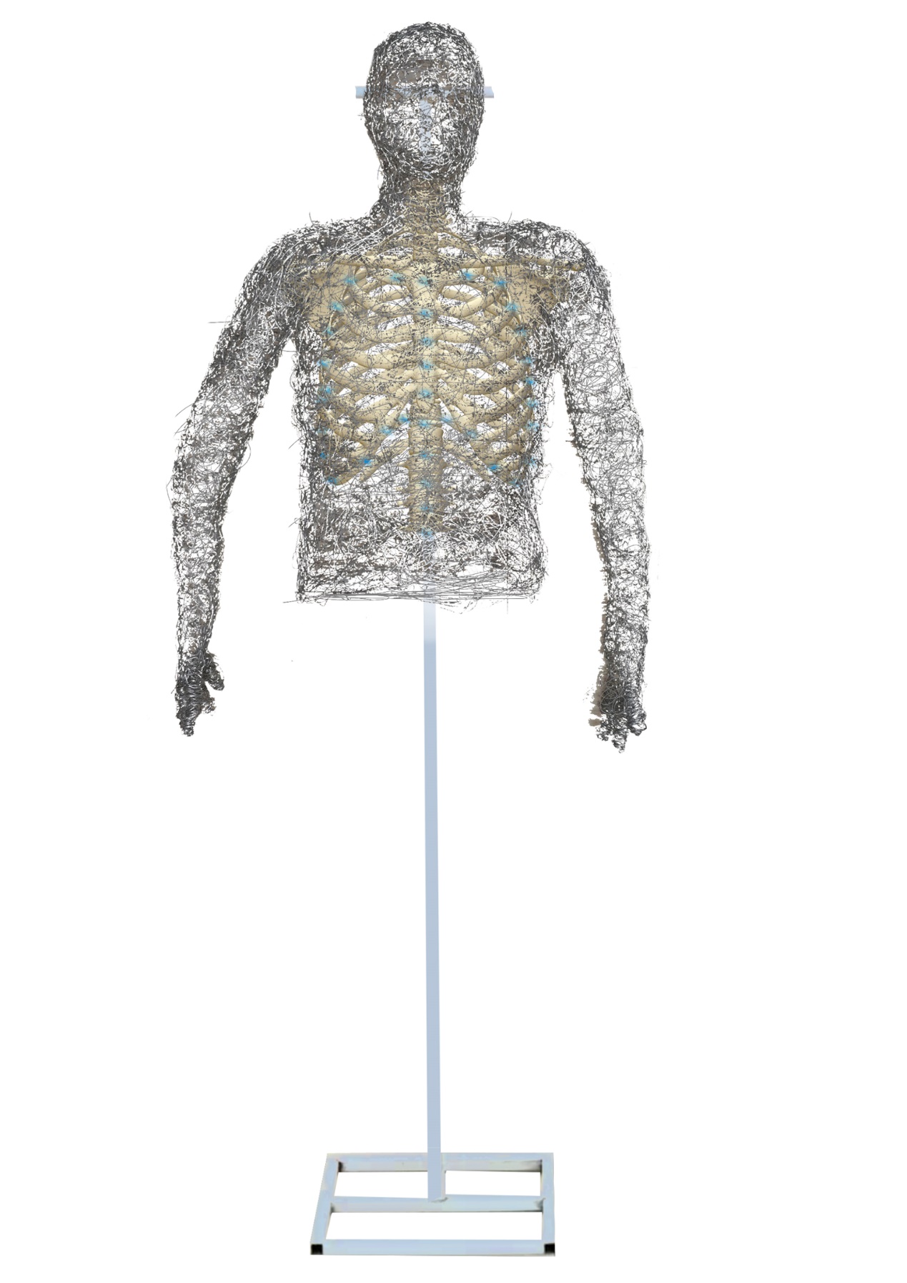 黄春萍作品简介:近些年人工智能技术取得了突破性的进展。虽然人工智能给人类带来了巨大利益,但是也带来了一系列的潜在风险。本作品旨在探讨人类与人工智能关系,以寄生关系和共生关系为灵感,通过装置艺术的形式来展现来表现人类与人工智能之间关系,并引起观众对人工智能技术思考,以及今后社会要如何人工智能技术的发展,使其造福人类社会。