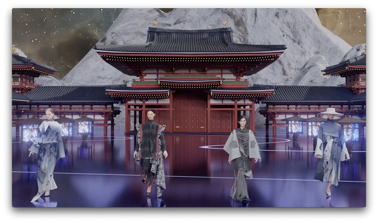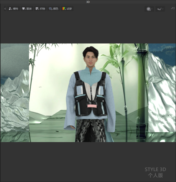 杨斯博作品简介:本次设计采取国风山水与虚幻相结合,打造出一种国风科幻的场景,并选取国风服装进行走秀,场景与服装搭配协调自然,给观者更加舒适的观感。通过这种国风山水与虚幻相结合的设计,不仅能够吸引观众的目光,还能让他们在欣赏服装的同时沉浸在梦幻般的场景之中。虚拟服装走秀打破了传统现实走秀的束缚,还为时尚界带来了全新的视觉体验,展示出了数字技术与国风文化的融合。