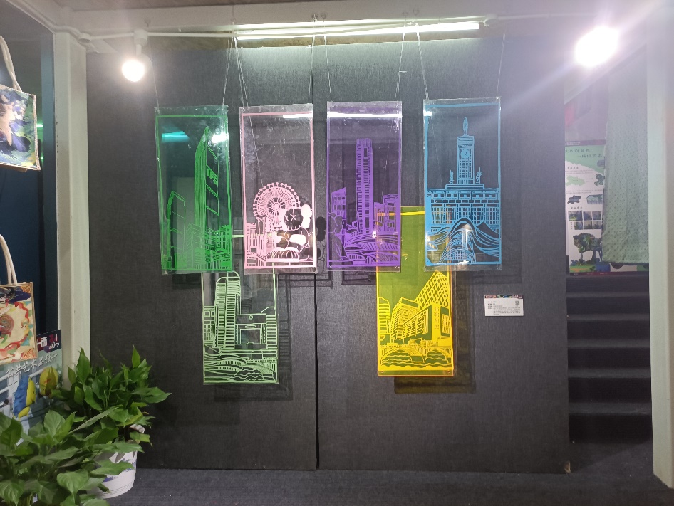 吕雯汐作品简介:“榕城繁花”以福州郭氏纸翻花第十六代传承⼈郭远峰正着手创新的“纸翻花七十二变”的制作和展示技艺为研究对象,对其在结构与形态上进行提炼、融合与创新,概括设计出纸翻花的平面图形并应用到文创产品中,使作品符合时代精神和价值观,意在让纸翻花重新“盛放”,代代传承。