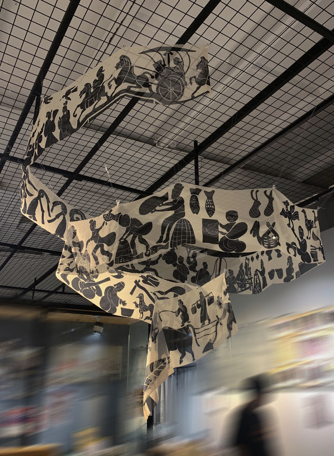 李建英作品简介:作品以侗族崇拜文化为出发点,“灵”为核心。纹样设计根据侗歌内容含义进行纹样筛选,进而结合点线面的美法则,对纹样进行变形,旋转,重构,分割或是局部提取。从左至右依次为,对爱情的祝福,对亲情的延续,对勤劳的歌颂,对自然的崇拜。